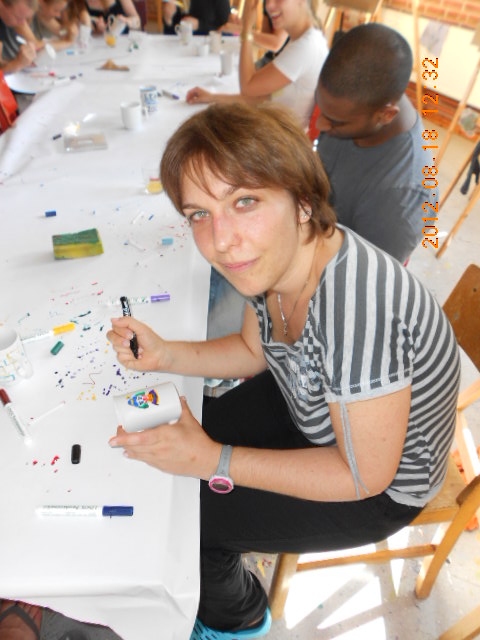 Ha már ébren vagyok… lassan bedugom a fülembe a viaszt és olvasgatok valamennyit, vagy 1-2 órát. Holnapra, azazhogy mára, már mindent előkészítettem, ami ahhoz kellett, hogy a reggeli készülődés minél gördülékenyebb és a lehető leghalkabb legyen, Valószínűleg nem várom meg a 9:45-öt azzal, hogy felkeljek. Felöltözöm és kimegyek a teakonyhába olvasgatni és viszem magammal az utolsó kettőazegyben kávémat meg a bögrémet, amit még az első héten festettem itt. 2012. augusztus. 18-án. Régen.