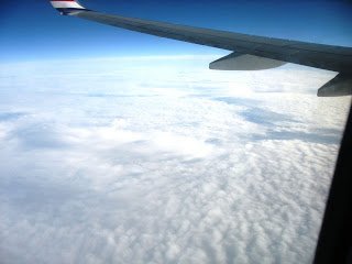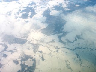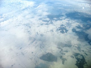 Sokáig tartott, amíg ráfordultunk a kifutópályára, de aztán hipp-hopp s már magasan a házak felett suhantunk. Alattunk a felhőtenger. Hiába nyújtogattam a nyakamat, ha a szél ütött is rést valahol az összefüggő felhőtakarón, azt nem lehetett elkülöníteni az alatta húzódó hófödte tájtól. Csak akkor, amikor már rég Pest felett repültünk és ereszkedtünk lefelé oda, ahol a családom már várt rám.